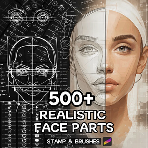 Perfect for beginners and professionals alike, this brush set is ideal for character illustration, portrait studies, concept art, and anatomy practice. Whether you’re designing realistic faces, stylized characters, or practicing facial structure, these stamps help speed up your workflow while keeping your artwork polished. This set is especially useful for artists who want to improve facial proportions, experiment with different looks, or create portraits more efficiently.